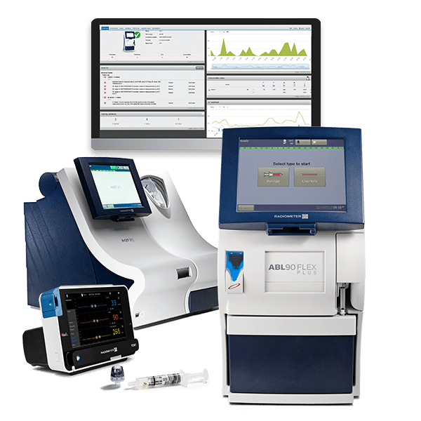 Además de 19 parámetros críticos de gases en sangre y 9 biomarcadores, Radiometer ofrece analizadores de pruebas sanguíneas perfectamente conectados, monitores transcutáneos y una solución informática para el "point of care" que automatizan y simplifican la extracción de sangre y la captura de datos con: